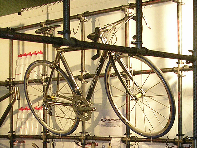 ブース全体を二人で持ち上げられるほど軽量で、自転車を複数台展示しても大丈夫なほど堅牢な物でした。