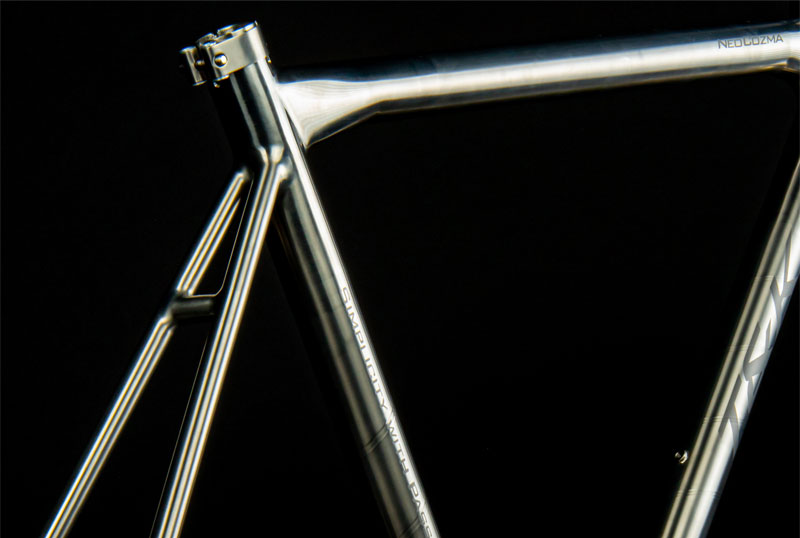 Neo Cozmaはブレーキシステム、ダウンチューブとシートチューブのチタン合金材質、ケーブルルーティング、フロントフォーク材質、フレーム仕上の選択が可能です。